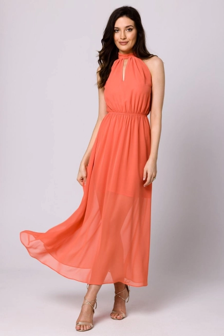 Długa sukienka szyfonowa wieczorowa z dekoltem halter, elegancka i romantyczna. Zwiewna sukienka maxi z dekoltem typu halter wiązanym przy szyi i rozcięciem w dekolcie. Sukienka posiada podszewkę oraz gumkę w pasie. Ta sukienka szyfonowa to fantastyczna propozycja na wiele okazji: jako sukienka wieczorowa, sukienka wizytowa czy sukienka na randkę. Dobierz do niej swoje ulubione dodatki i stwórz własną, wyjątkową stylizację. Wysoka jakość materiału oraz wykonania, sukienka została uszyta w Polsce.