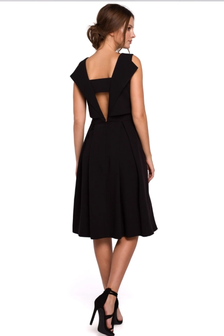 Elegancka rozkloszowana sukienka dekolt V na plecach czarna