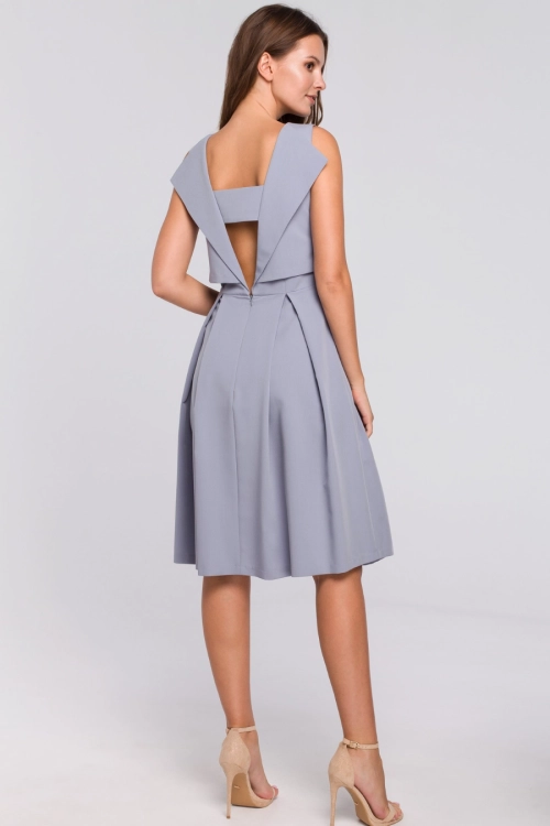 Elegancka rozkloszowana sukienka z dekoltem na plecach szara