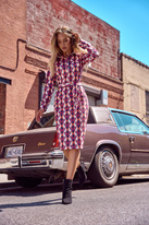 Ołówkowa sukienka z nadrukiem koszulowa góra i kołnierzyk