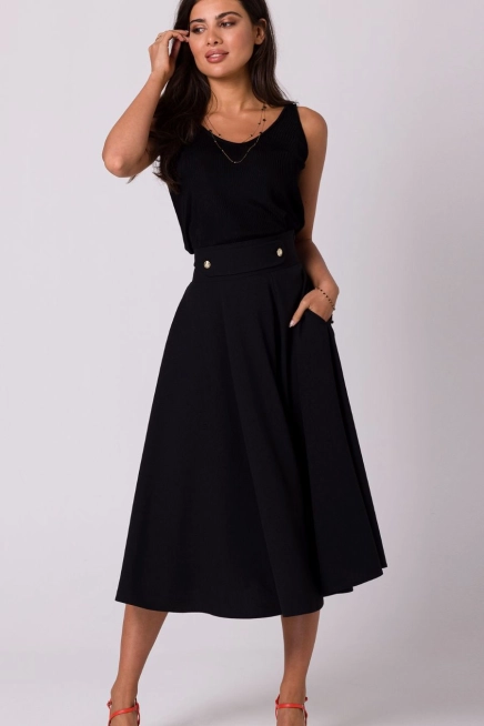 Rozkloszowana spódnica z wysokim stanem i kieszeniami czarna