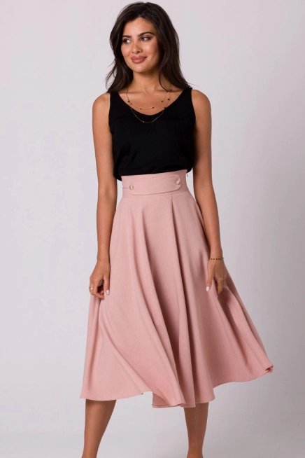 Rozkloszowana spódnica z wysokim stanem i kieszeniami różowa