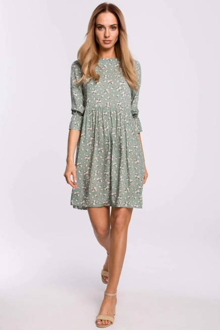 Sukienka boho rozkloszowana mini z wiskozy w kwiaty zielona