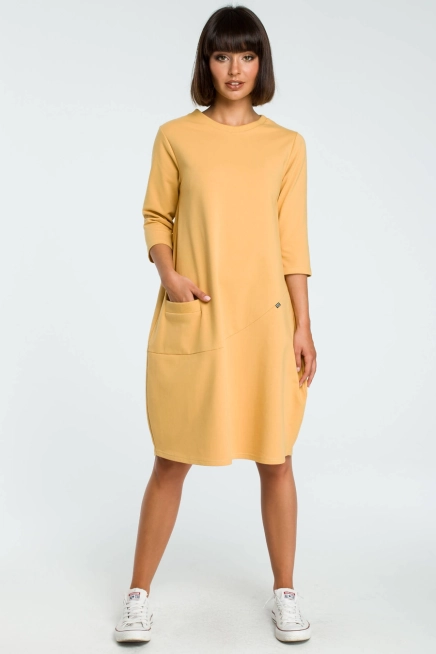 Sukienka dresowa bombka oversize z kieszonką z przodu żółta