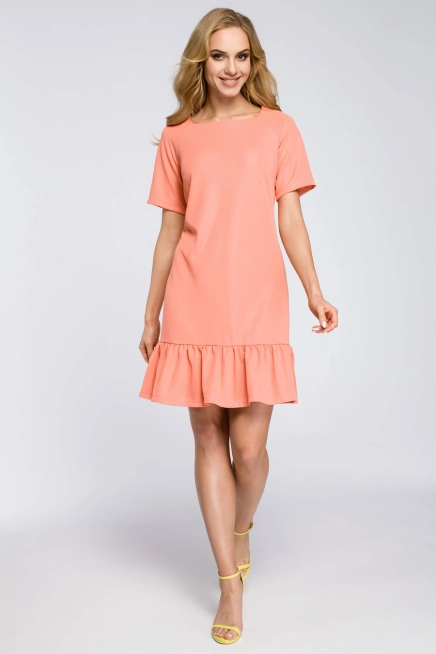 Sukienka dzianinowa trapezowa z falbaną na dole koral