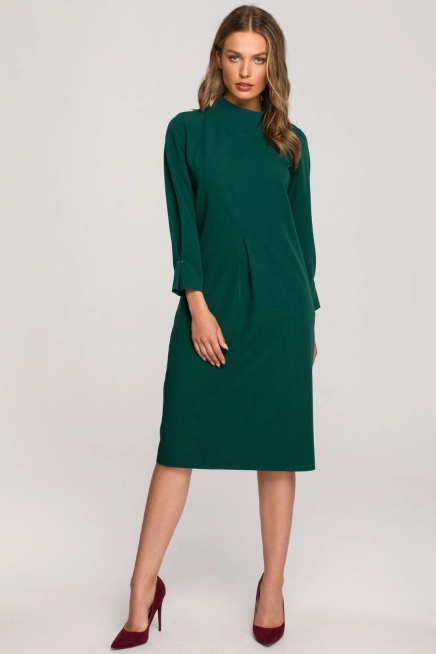 Sukienka elegancka pudełkowa z zaszewkami zielona