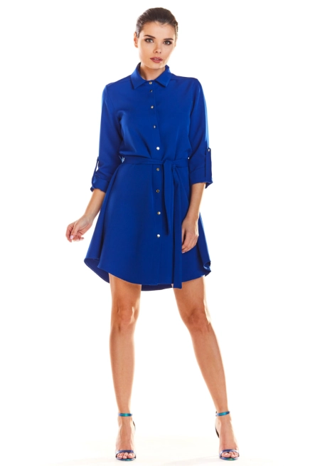 Sukienka koszulowa szmizjerka z paskiem niebieska