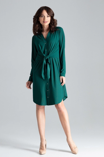 Koszulowa sukienka z długim rękawem - butelkowa zieleń: