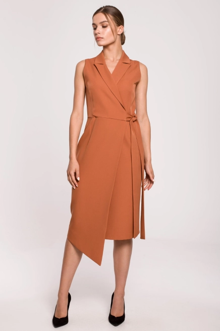 Opinie o Sukienka marynarka na lato bez rękawów asymetryczna żakietowa brązowa
