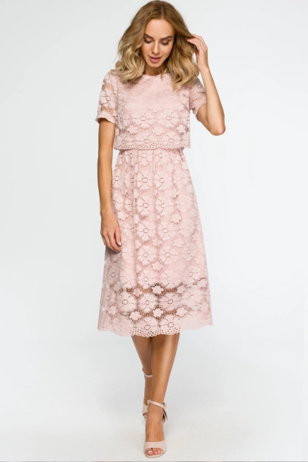 Koronkowa sukienka na wesele, komunię, przyjęcie - różowa: