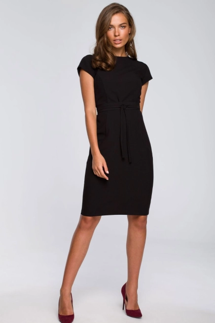 - Klasyczna sukienka z krótkim rękawem, w talii pasek. Sprawdzi się jako sukienka biznesowa, sukienka do pracy, ale także jako sukienka wizytowa