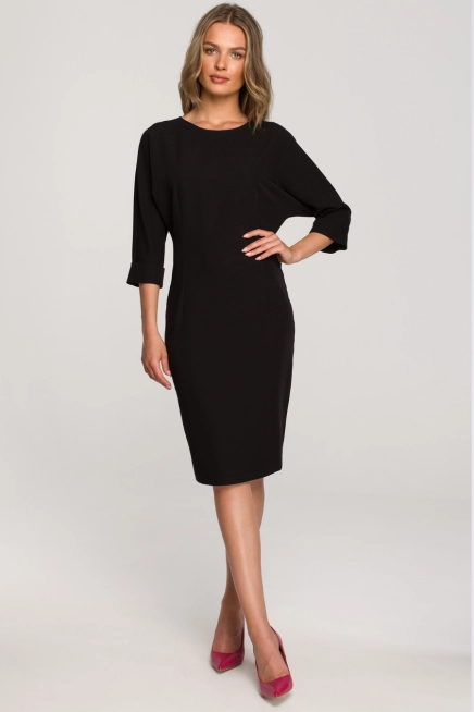 Elegancka czarna sukienka ołówkowa z nietoperzowymi rękawami 3/4