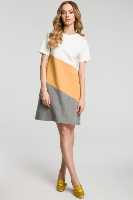 Powitaj wiosenno-letni sezon pełen energii i kolorów dzięki tej wyjątkowej sukience mini w trzech odcieniach. Jej oryginalne połączenie barw przyciąga wzrok i nadaje stylizacji świeżości oraz dziewczęcego uroku. To idealny wybór na co dzień, wakacyjne spacery czy wieczorne spotkania na plaży.