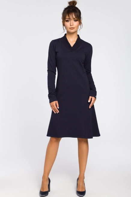 Sukienka trapezowa z bawełnianej dzianiny granatowa