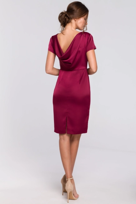 • Koktajlowa, wizytowa sukienka uszyta z lejącego, lekko połyskującego materiału. Z efektownym dekoltem na plecach. Ołówkowy, lekko dopasowany krój podkreśla sylwetkę.