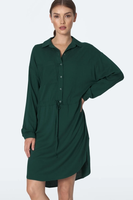 Sukienka koszulowa szmizjerka z wiązaniem w talii i długim rękawem butelkowa zieleń: