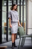 Sukienka dzianinowa ołówkowa ze zbluzowaną górą szara na co dzień