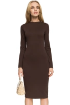 Sukienka dzianinowa ołówkowa dopasowana midi z długim rękawem brązowa
