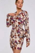Elegancka sukienka z drapowaniem dekoltem V i modnym nadrukiem