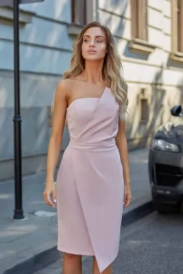 ( ilość produktów: 34 )Elegancka sukienka ołówkowa asymetryczny dekolt niebieska