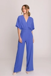 Elegancki kombinezon damski z kopertowym dekoltem niebieski